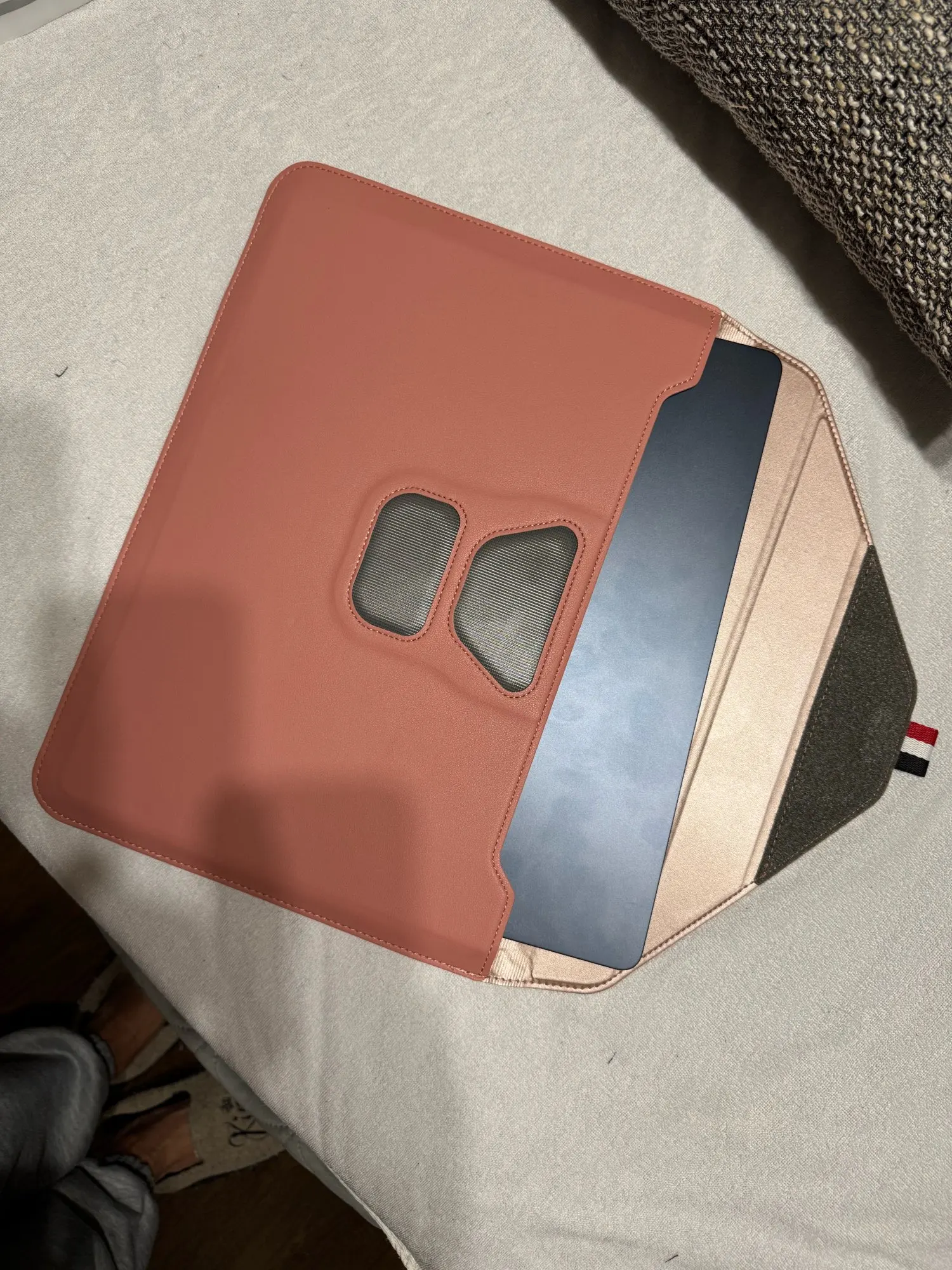Crafted from high-quality water-resistant PU leather, this sleeve offers premium protection against scratches and splashes while maintaining a slim, professional aesthetic. The innovative folding bracket design creates a stable "golden triangle" structure that elevates your laptop to the perfect viewing angle. This ergonomic lift not only reduces neck strain and typing fatigue but also significantly improves airflow, helping to dissipate heat and keep your device running smoothly during heavy tasks.